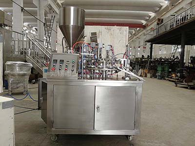 塑料復合軟管灌封機主要用于一次傳動原理。利用分度機構帶動裝有夾具的轉盤作間歇運動,完成自動灌裝及內外加熱、封尾、壓碼、切邊、成品退出等一系列功能。灌裝計量準確,加熱時間穩定、可調、封尾外觀漂亮、整齊、牢固、衛生。切邊平整。該機設為10個工位,除人工上管外,其它均可自動完成。整機運行平穩可靠,無噪音和其它污染。